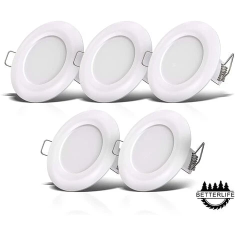 Quality-Un ensemble de 5 spots de salle de bain blancs ultra-plats (25 mm) durables.