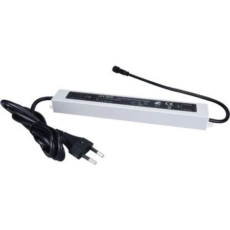 Livré avec câble de sortie de 1,3 m terminé par une connexion rapide mâle et deux vis de fixation. Câble d’entrée de 30 cm relié à une prise électrique. Certifié RoHS et CE.