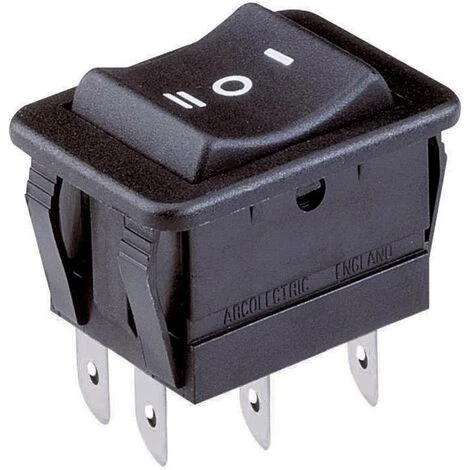 Conditionnement : 1 pc(s) · Connexion : cosses plates 4.8 mm · Couleur boîtier/bouton : noir · Courant de commutation (max.) : 16 A · Données techniques complémentaires : Homologations: ENEC, UL, CSA · Découpe façade avant : 30 x 22 mm · Fonctions (interrupteur/bouton) : permanent/0/permanent · Motif d’impression : I/0/II · Position de commutation : 2 x On/Off/On · Tension de commutation : 250 V/AC · Type (type fabricant) : H1570 VB AAA · Type d’interrupteur/bouton (catégorisation) : Interrupteur à bascule · Type d’éclairage : sans · Épaisseur panneaux frontaux : 2.5 mm
