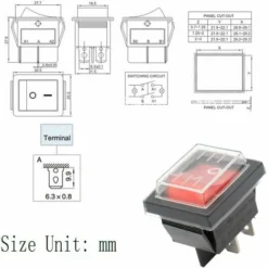 3Pcs Interrupteur à Bascule Lumière Rouge ON/OFF Avec Couvercle étanche 16 A/250 V CA(DPST)
