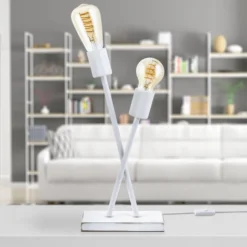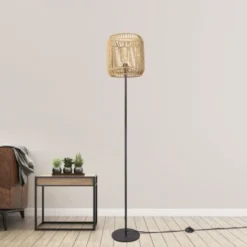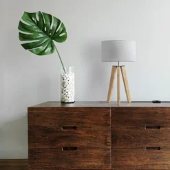 Paco Home Lampadaire Lampe De Bureau Lampe Salon Moderne Abat-Jour Tissu Bois Blanc, Lampe De Table