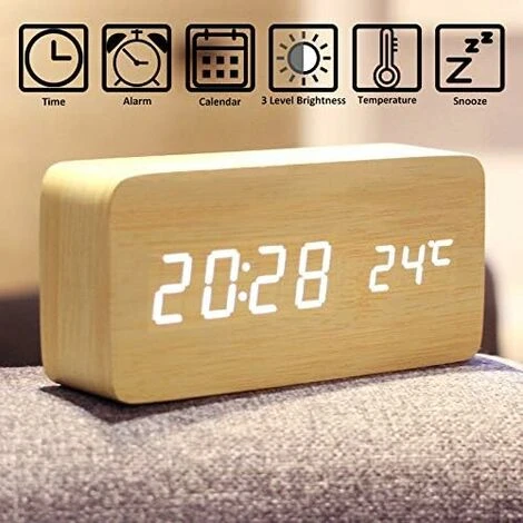 Facile à utiliser – le réglage du réveil et de l’heure est simple. Nous n’ajustons que les boutons à l’arrière. Le réveil est doté de boutons rétroéclairés à l’arrière.