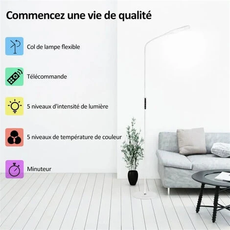 lampadaire sur pied avec Luminosité Réglable, col de cygne 360 °rotatif, fonction mémoire
