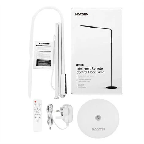 1 x lampadaire NACATIN avec opération tactile, qui a passé de nombreuses certifications telles que CE, FCC et ROHS, 1 x télécommande, 1 x adaptateur, 1 x instruction.