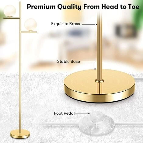 Lampadaire Sur Pied Salon 165cm Avec Abat-jour En Verre Lampadaire Moderne Pour Salon Chambre Bureau Or Ampoule E27 Non Inclue
