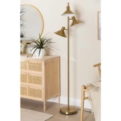 Lampadaire Carlo Abat-jour Tissu Pieds 100% Bois L 40 X L 40 X H 156 Cm INTERNATIONAL DESIGN
