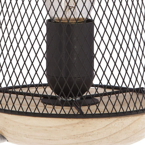 Pour une ambiance rétro chic dans votre intérieur, adoptez cette lampe à poser bi matière en grille et bois. . L’abat-jour de cette lampe est noir et son socle est en bois. . Cette lampe à poser en fer et bois diffusera une lumière douce dans votre pièce. Nécessite une ampoule à douille E27 40W (non fournie). Vous disposerez d’un interrupteur ON/OFF. . Caractéristiques :. Dimension de la lampe : Diam. 15 x H.23 cm. Dimension de la base : Diam. 15 x H. 3 cm. Ampoule : Non incluse. Orientable : Non. Puissance ampoule : 40W maximum. Type de douille : E27