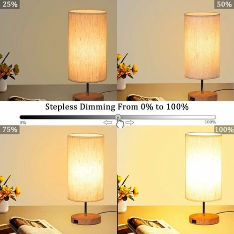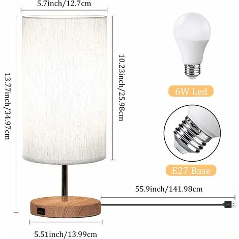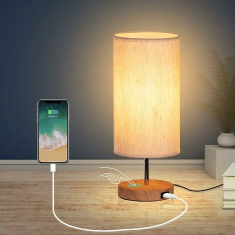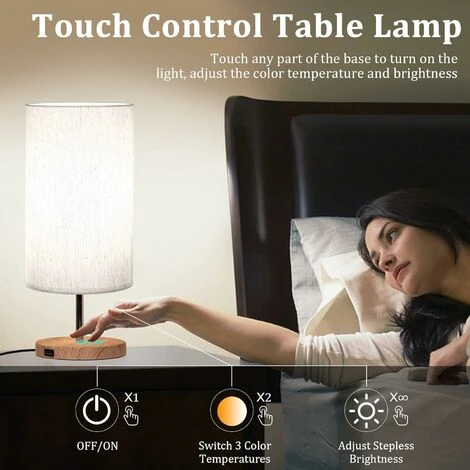 Éclairage domestique sophistiqué]. L’abat-jour en tissu de haute qualité adoucit la lumière et protège vos yeux. La base épaisse en bois est sûre et sécurisante et crée un style simple. La lampe de chevet tactile peut décorer votre maison, votre salon,