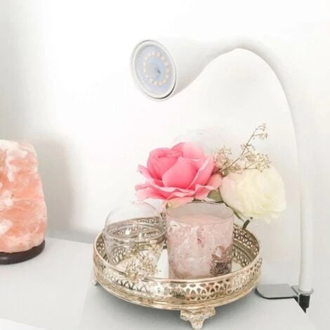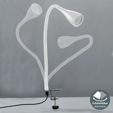 Luminaire idéal pour table de chevet ou bureau. Malgré sa petite taille elle éclaire comme une grande: le faisceau lumineux est de 110°. La fixation à pince permet une installation sur des tables jusqu’à une épaisseur de 30mm. Une fixation sur des étagères est également possible. Grâce au bras flexible innovant, la lampe peut être tournée, pliée et pivotée selon vos souhaits. Elle est dimmable avec un variateur intégré : vous pouvez choisir entre 3 niveaux de luminosité en appuyant simplement sur l’interrupteur. La luminosité (faible, moyenne ou forte) s’adapte selon vos envies. Une ampoule dimmable GU10 5W est incluse.