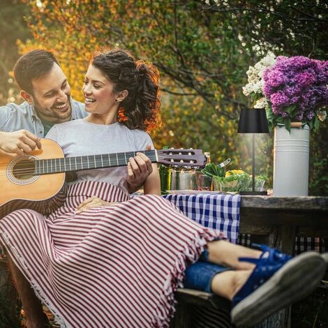 La lampe de table LED de 38 cm de haut est une lumière pratique et mobile grâce à sa batterie intégrée. Sans fil et facile à placer sur la table de jardin du balcon et de la terrasse.