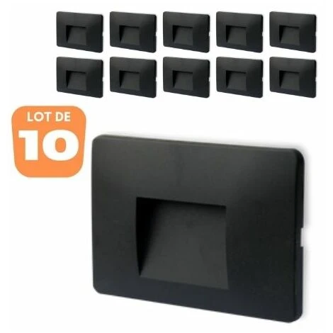 Le lot de 10 spots LED mural VEKTAB4 carré noir 3W 3000K IP65 permet de baliser les escaliers et les couloirs.
