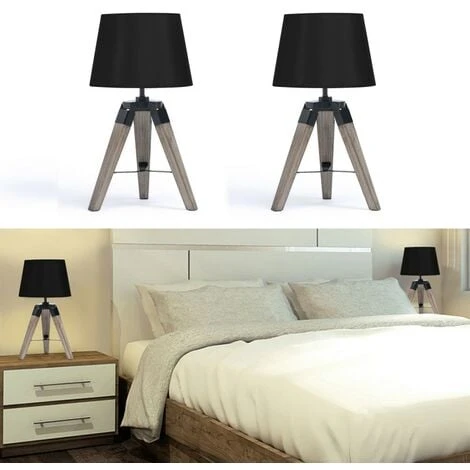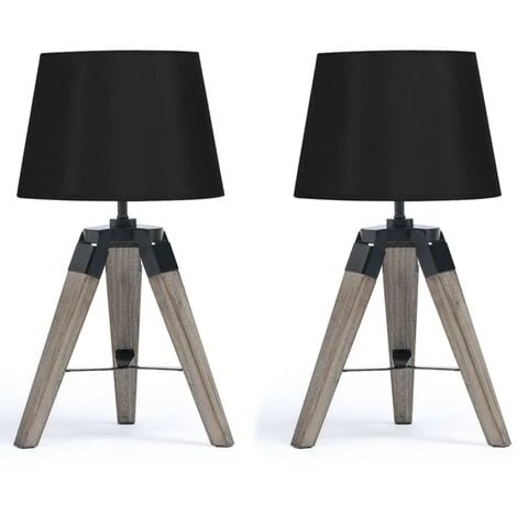 Ce lot de 2 lampes de chevet de forme trépied en bois foncé grisé et abat-jour noir apporte une double touche de décoration rétro ultra-tendance à votre intérieur ! Pratiques, les 3 pieds imitation bois et les montures en métal noir de chaque lampe de chevet lui garantissent une stabilité optimale.Moderne, chaque lampe de chevet sur pied est dotée d’un abat-jour en tissu de forme conique et de couleur noire. Posez la lampe où vous le souhaitez, idéalement sur une table de nuit dans votre chambre à coucher ou sur votre bureau ! Elle diffusera une lumière douce et chaleureuse parfaite pour bouquiner le soir ! Dimensions du lot 2 lampes de chevet noiresDimensions globales hors-tout : Longueur 25 cm x largeur 25 cm x Hauteur 43 cmDimensions de l’abat-jour : L. 18 x l.24 x H.15 cmType de douille (ampoules non fournies) : E27Puissance : 40 WClasse énergétique : A++ à GLampes vendues par lot de 2Découvrez nos autres coloris disponibles sur notre boutique en ligne :- Lot de 2 lampes de chevet trépied en bois clair blanches- Lot de 2 lampes de chevet trépied en bois foncé grises