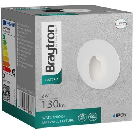 Il permet de baliser les marches de votre escalier ou de vos couloirs avec un rendu esthétique moderne. A l’extérieur il habillera la lame de finition de votre terrasse bois. Avec de très faibles consommations d’énergies et une très longue durée de vie, vous réalisez de réelles économies. En effet, les 2W LED avec 130 lumens, correspondent à 15W incandescent. Le mini spot LED mural BRAYTRON Vector B, est vendu avec un socle d’encastrement qui protège le mécanisme et le transformateur inclus. Le diffuseur est en verre et il dirige la lumière vers le bas avec un angle de 75°. Le diamètre de la face avant est de 48mm tandis que le diamètre du socle d’encastrement est de 42mm. La hauteur du spot est de 62mm. En aluminium, ce spot est robuste et durable. Son indice de protection IP65 permet de résister aux intempéries et convient donc à une installation à l’extérieur. L’indice de protection IP65 assure que le produit est :