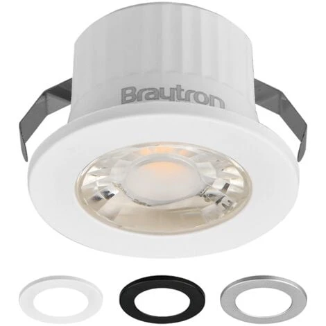 Les enjoliveurs permettent de tester les 3 couleurs pendant l’installation, pour choisir celle qui s’accorde le mieux avec la décoration intérieure de la pièce. Par la suite, les enjoliveurs peuvent être changer a tout moment, en fonction des envies et des changements de déco intérieure. L’angle de 38° du faisceau lumineux, offre un éclairage dit d’accentuation (de 24°à 40° = angle moyen). Pour l’installation du mini spot LED rond blanc 3W, vous devez disposez d’un faux plafond avec une profondeur de 50mm minimum pour pouvoir encastrer le spot et le fondre dans le décor. Grâce au driver intégré et les ressorts de fixation, l’installation est simple et rapide. Le diamètre de découpe est de 32mm. La température de couleur Kelvin est de 4000K (blanc naturel), cette couleur d’éclairage se rapproche le plus de la lumière naturelle du jour. De plus, doté d’un indice de protection IP54, ce mini spot peut être installé dans des pièces humides, notamment la salle de bain en Zone 2, selon la norme en vigueur. La puissance LED de 3W est équivalente à une ampoule incandescente classique de 25W. Le flux lumineux est de 240 lumens et l’indice de rendu des couleurs supérieur à 80. Sa très faible consommation d’énergie et sa très longue durée de vie de 20000hrs, permettent de réelles économies. Produit nom compatible avec un variateur d’intensité. Produit disponible avec face avant blanc, noir ou argent.
