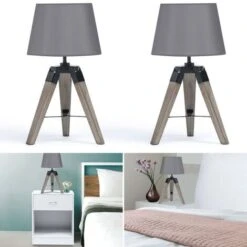 Lampe De Table Tissu Gris, Douille E27, Ø 20cm, Interrupteur Câble, Câble De 140cm Lampe De Chevet