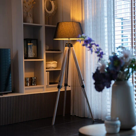 Ce trépied moderne ressemble à une maison, avec son apparence élancée, c’est définitivement une image à voir. Les détails robustes rendent le design minimaliste particulièrement raffiné, la combinaison parfaite entre cool et subtil. Le lampadaire est fourni avec un abat-jour effilé noir