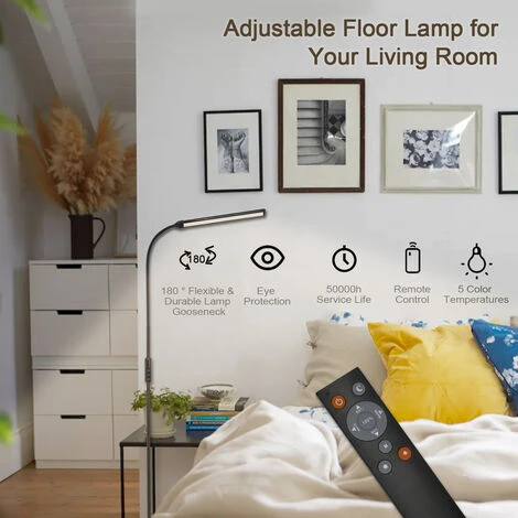 Lampadaire col de cygne flexible à LED 12W avec télécommande