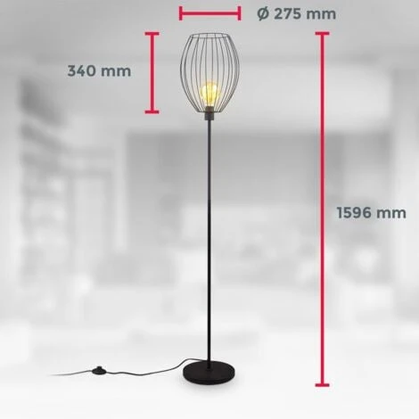 Retro Lampadaire Avec Abat-jour I Interrupteur à Pédale I Hauteur 159,6 Cm I E27 I Métal I Noir I Sans Ampoule