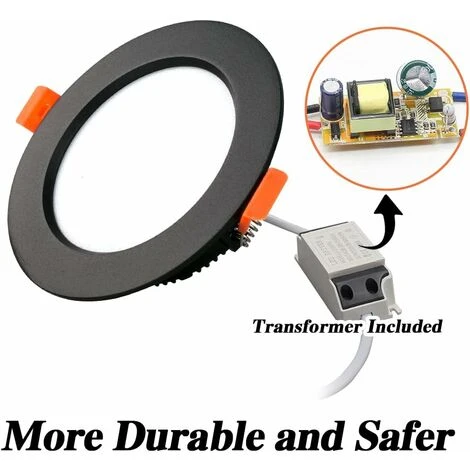 💡【Installation facile】Spot led extra plat noir taille du trou ouvert : 80 mm-90 mm/3,15 pouces-3,54 pouces, profondeur d’installation : environ 29 mm/1,14 pouces, diamètre de surface : 108 mm/4,25 pouces ; directement connecté à l’alimentation 220-240 V, y compris le transformateur ; les bornes de câblage simples et sûres facilitent le câblage. Indice de protection IP : IP44.