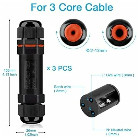 Connecteurs de Câbles Étanches, Boite de Derivation Étanche Exterieur IP68, Raccord Electrique Étanche Lot de 3, Connecteur Electrique Etanche 3 Fils pour Câble Ø 2-13mm